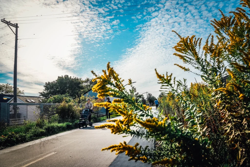 The 606 is a unique trail of flowers, foliage and a steady stream of locals traversing the Humboldt Park, Logan Square and Wicker Park neighborhoods. The populace that utilizes the trail comes on bike, scooter, foot and even, on occasion, roller skates. This elevated thoroughfare has become a vibrant ribbon of green and outdoor recreation. And with it has come redevelopment, new buildings, parks, recreational outlets and retailers. It’s like a river of life running through the city.