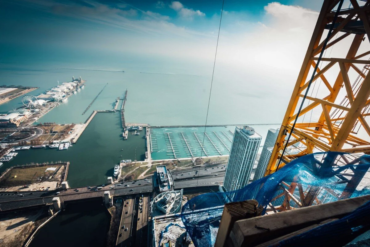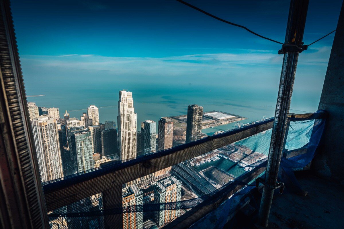 There are so many ways to pay homage to the new condo/hotel/luxury rental The Vista that I find myself a little at a loss for where to start. However, it’s always easiest to start with tall. The undulating structure is destined to be the 3rd tallest building in our fair city, reaching 1,191 ft. and 93 floors; it stands head and a few shoulders above the rest. It is also the tallest building built in Chicago since the 2007 recession. And it will be the tallest building designed by a woman, Jeanne Gang of Aqua Fame (an architect who is fast making history with her innovative building designs). These are the expected but important claims one needs to share. The buildings height has been evident even early on in the construction phase as it stands out boldly against the skyline.
