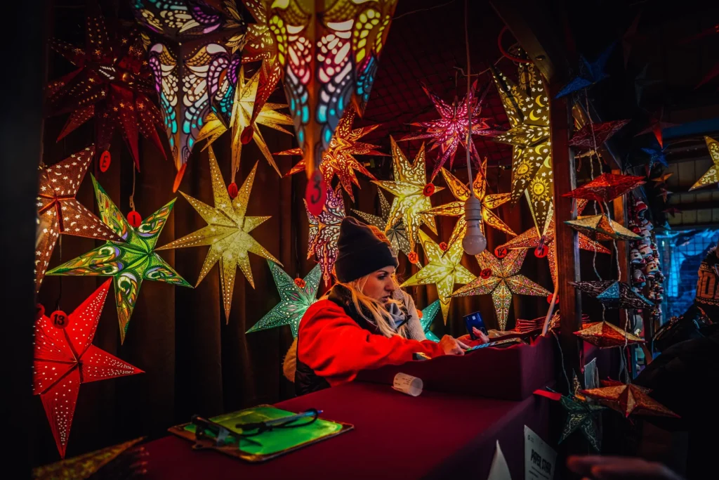 If you are shopping for gifts or tree decorations, you can have your pick of hand-blown glass ornaments, beautifully-painted and ready to hang. You will also find a dizzying range of traditional, handmade wooden toys, woolen garments and artworks. The options are limitless.