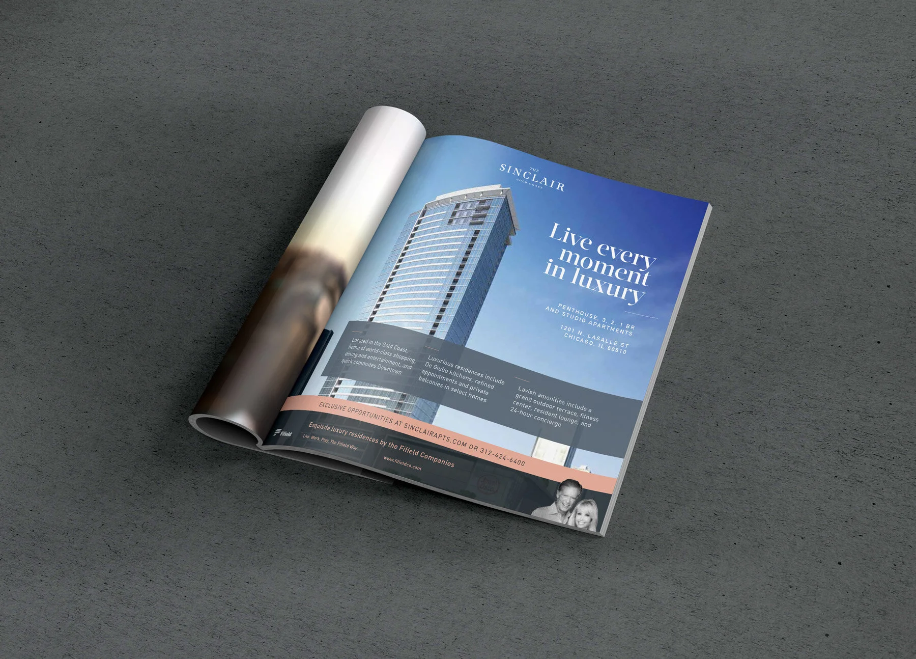 The Sinclair is a new construction luxury apartment high-rise in the Gold Coast. The developer, Fifield Companies, is known for creating the highest quality residences, and the Sinclair was to be its most significant property yet. The property was named after the daughter of the owners of Fifield Company – who plan on living in the building. Because the property was so special and personally important for the developers, expectations were high for the branding, messaging and marketing.